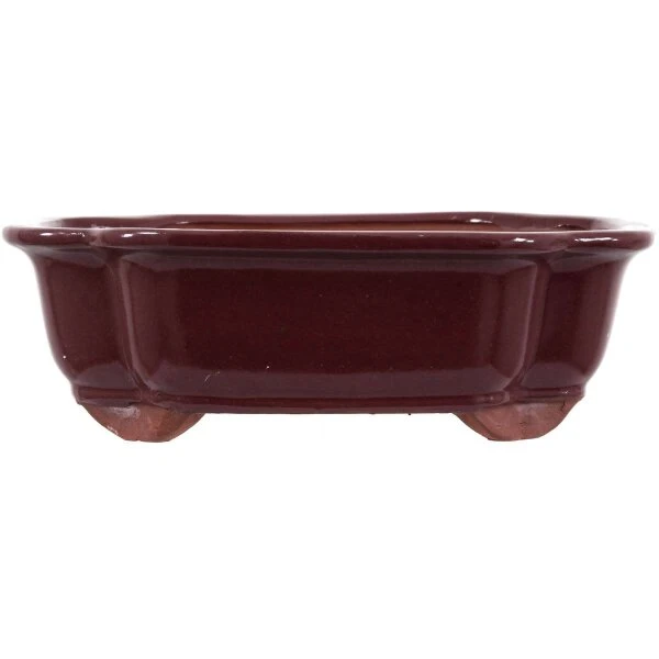 Bonsaischale (glasiert, weinrot, sonstige form) in den Abmessungen: 25.5cm Länge, 20.5cm Breite, 8cm Höhe. Gute Standardqualität aus der Töpferstadt Yixing.