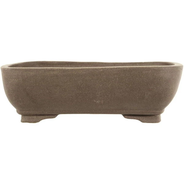 Bonsaischale (unglasiert, grau, rechteckig), handgemacht, in den Abmessungen: 26cm LÀnge, 19.5cm Breite, 8cm Höhe.