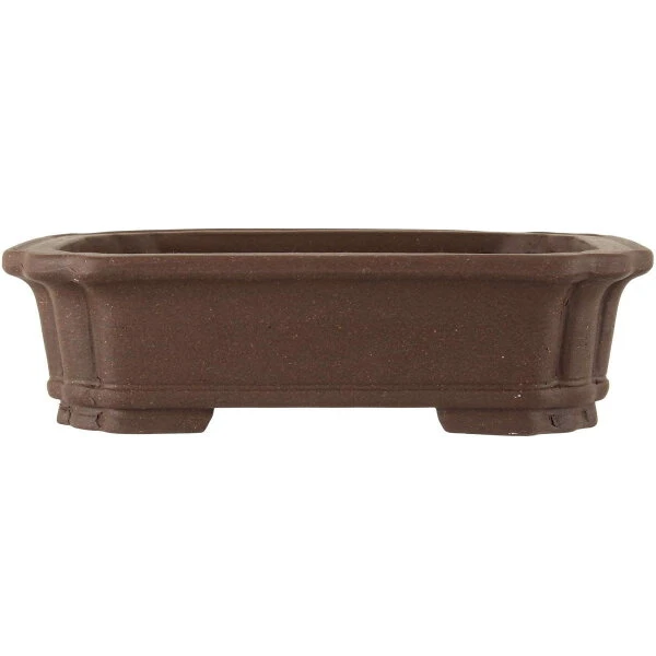 Bonsaischale (Unglasiert, Dunkelbraun, Rechteckig), handgemacht, in den Abmessungen: 26cm LÀnge, 21.5cm Breite, 7cm Höhe.