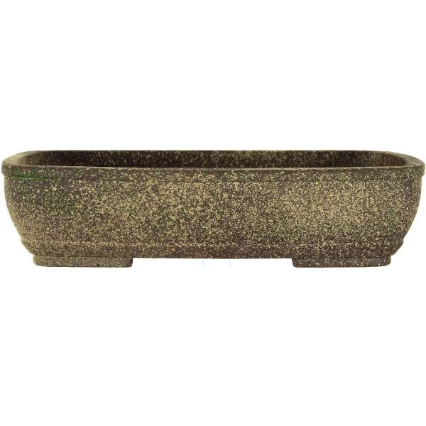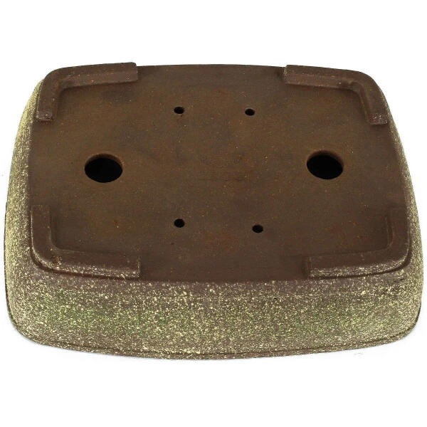 Bonsaischale (Unglasiert, Gelbbraun-Dunkelbraun, Rechteckig), handgemacht, in den Abmessungen: 29cm LÀnge, 23cm Breite, 6.5cm Höhe.