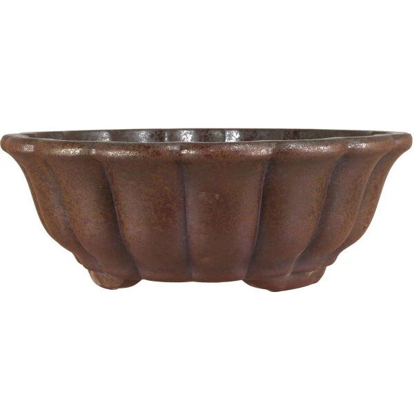 Bonsaischale (unglasiert, dunkelbraun, rund) in den Abmessungen: 30cm Länge, 30cm Breite, 10.5cm Höhe. Sehr gute Qualität aus der berühmten Töpferstadt Yixing.