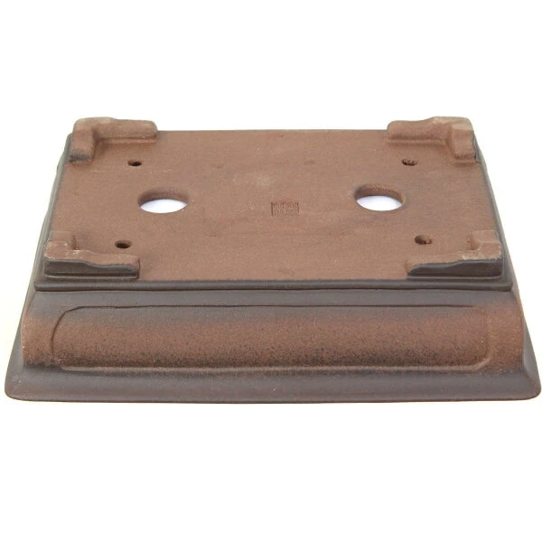Bonsaischale (Unglasiert, Antik-Braun, Rechteckig), handgemacht, in den Abmessungen: 34.5cm Länge, 26cm Breite, 9cm Höhe.