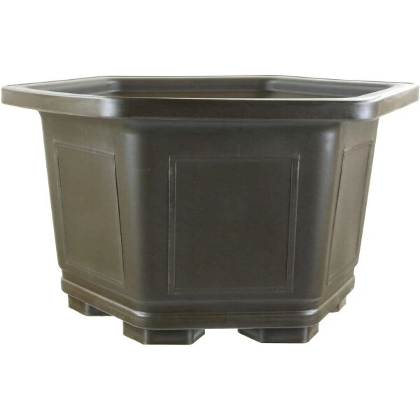 Hochwertige Kunststoff Anzuchtschale für Bonsai (Dunkelbraun, Sechseckig) in den Abmessungen: 41.5cm Länge, 41.3cm Breite, 25cm Höhe. Unempfindlich gegen Frost und UV-Einwirkung (3 Jahre Garantie).