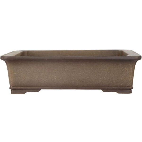 Bonsaischale (unglasiert, antik-grau, rechteckig), handgemacht, in den Abmessungen: 42cm Länge, 36cm Breite, 11.5cm Höhe.