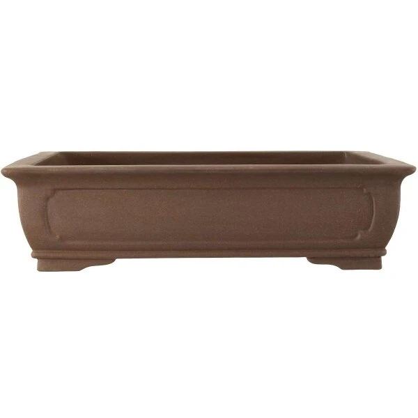 Bonsaischale (Unglasiert, Dunkelbraun, Rechteckig), handgemacht, in den Abmessungen: 44.5cm LÀnge, 35.5cm Breite, 11.5cm Höhe.