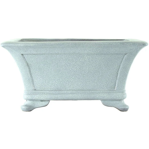 Bonsaischale (Glasiert, Weiß, Rechteckig), handgemacht, in den Abmessungen: 46cm Länge, 37.5cm Breite, 23cm Höhe.