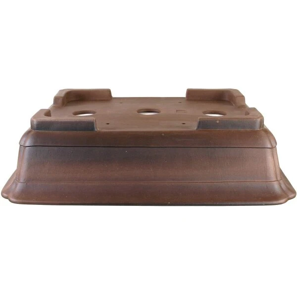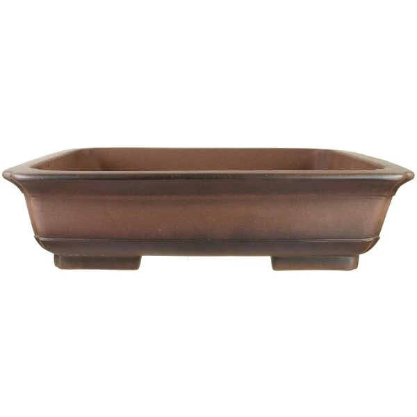 Bonsaischale (unglasiert, antik-braun, rechteckig), handgemacht, in den Abmessungen: 61cm LÀnge, 50cm Breite, 16cm Höhe.