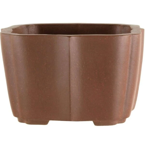 Bonsaischale (Unglasiert, Braun, Quadratisch) in den Abmessungen: 9.5cm LÀnge, 9.5cm Breite, 6cm Höhe.