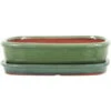 Bonsaischale mit Untersetzer (glasiert, blau, rechteckig) in den Abmessungen: 25cm Länge, 19.5cm Breite, 7.5cm Höhe. Gute Standardqualität aus der Töpferstadt Yixing.